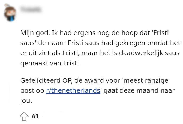 Mensen hebben in hun tijd op aarde flink wat nieuwe voedselcombinaties ontdekt. Zo zijn er liefhebbers van ananas op pizza, appels met ketchup of augurk met chocoladepasta. Maar net wanneer je denkt dat je het zo gek niet kunt bedenken, spant de volgende Reddit-gebruiker de kroon met deze ‘bijzondere’ Fristi-pastasaus…