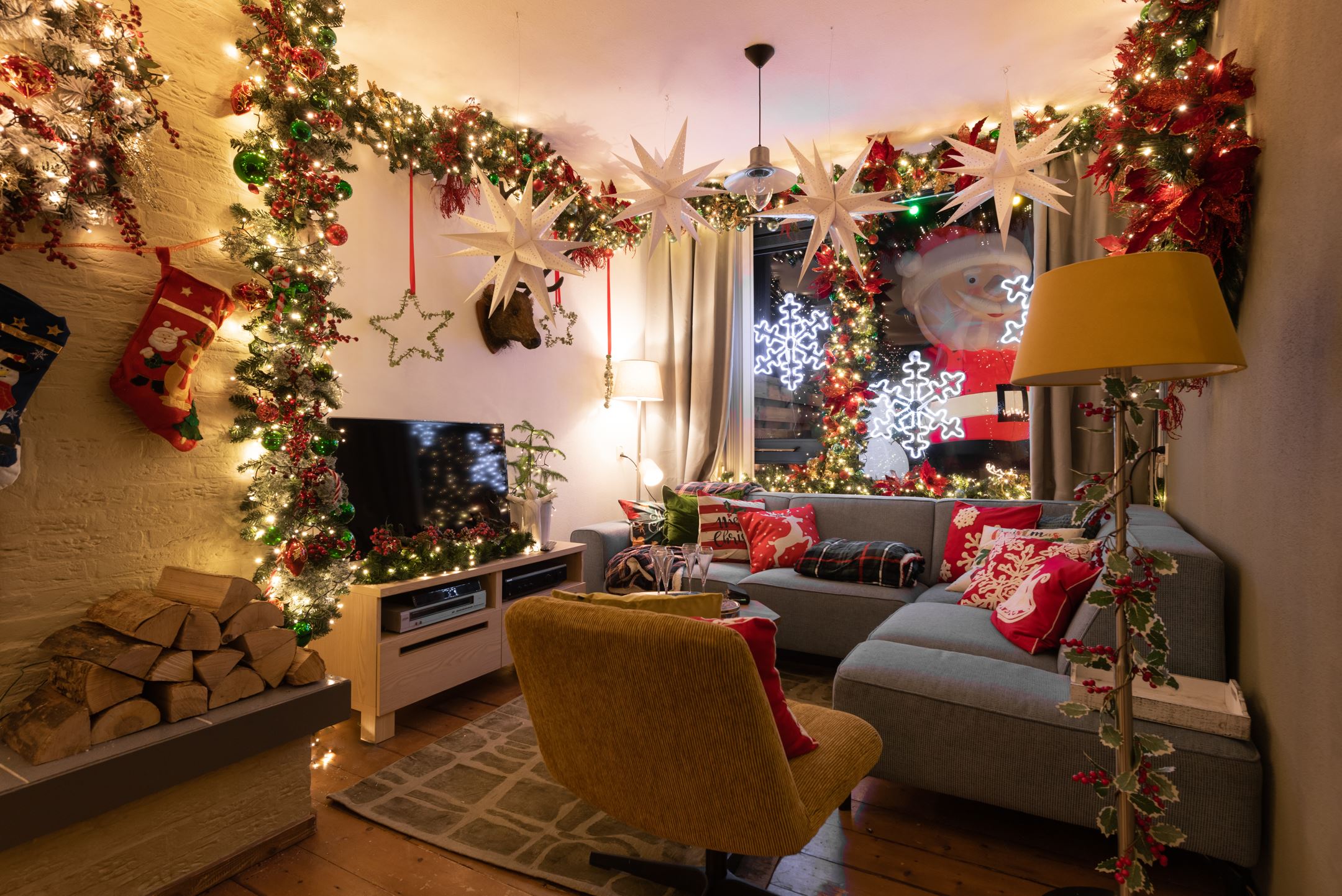 2. Het huis is van de voor- én achterkant versierd met opmerkelijk veel kerstversiering.
