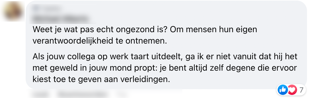3. Veel mensen in de reacties zijn van mening dat je iedereen oud en wijs genoeg is om zelf te bepalen wat je wel óf niet eet.