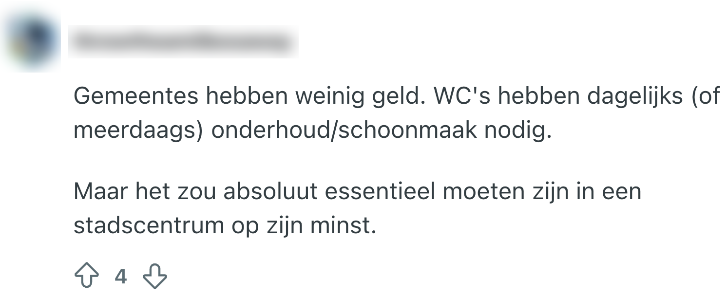 4. Mensen vinden de Nederlandse omgang met openbare toiletten dan ook strontvervelend.