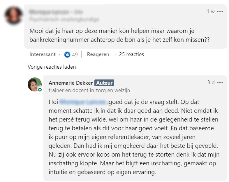 Geen saldo. Ook jij hebt het vast eens meegemaakt dat dat op de pinautomaat verscheen. Toch even pijnlijk. Vorige week overkwam het een vrouw in een Ermelose supermarkt. Gelukkig was daar Annemarie, die haar voor haar boodschappen betaalde. Annemarie plaatste het verhaal over die situatie op haar LinkedIn en dat kreeg niet alleen veel reacties, maar ook een mooi staartje.