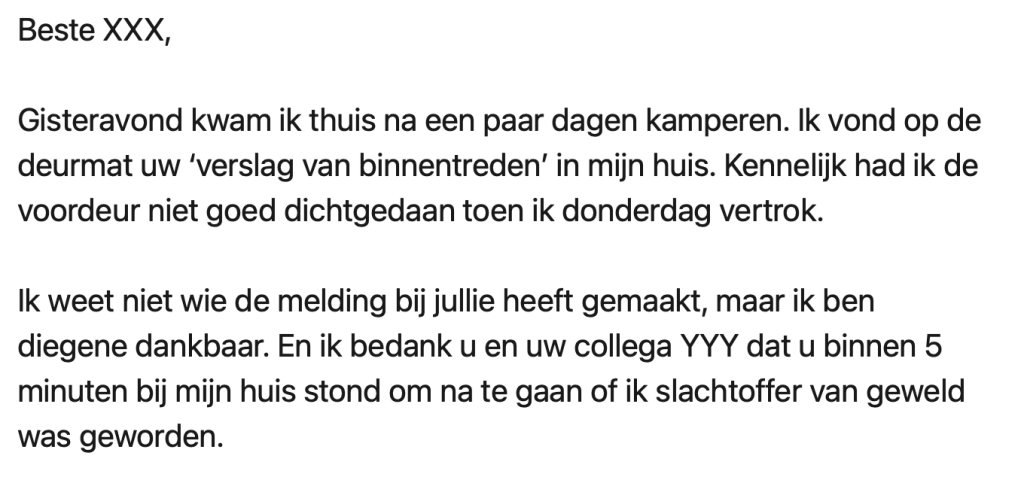 1. Kom je net thuis, ligt er een brief van de politie op je mat met de boodschap dat ze (terecht) in je huis zijn geweest.