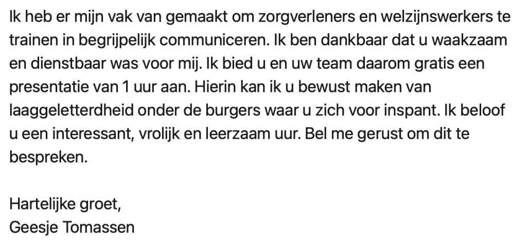 3. Geesje legt uit dat de brief niet voor iedereen leesbaar is en benadrukt hoe belangrijk het is dat iedereen de inhoud ervan begrijpt.