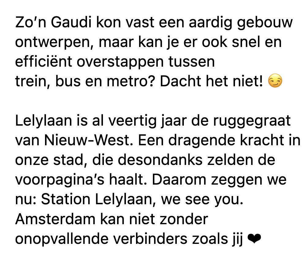 8. Maar anderen zijn blij dat station Lelylaan eindelijk een keer in de schijnwerpers wordt gezet.