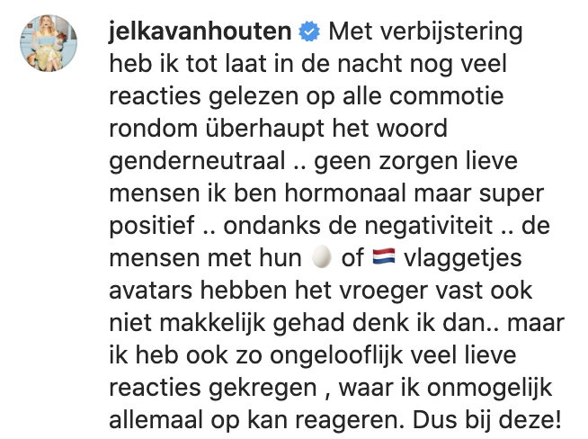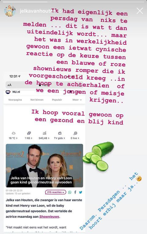 Afgelopen week kreeg cabaretier Henry van Loon een hele lading gezeik over zich heen, nadat hij en Jelka van Houten hadden aangegeven dat ze hun kind genderneutraal zouden gaan opvoeden. Nu reageert Jelka van Houten zelf ook op alle ophef.