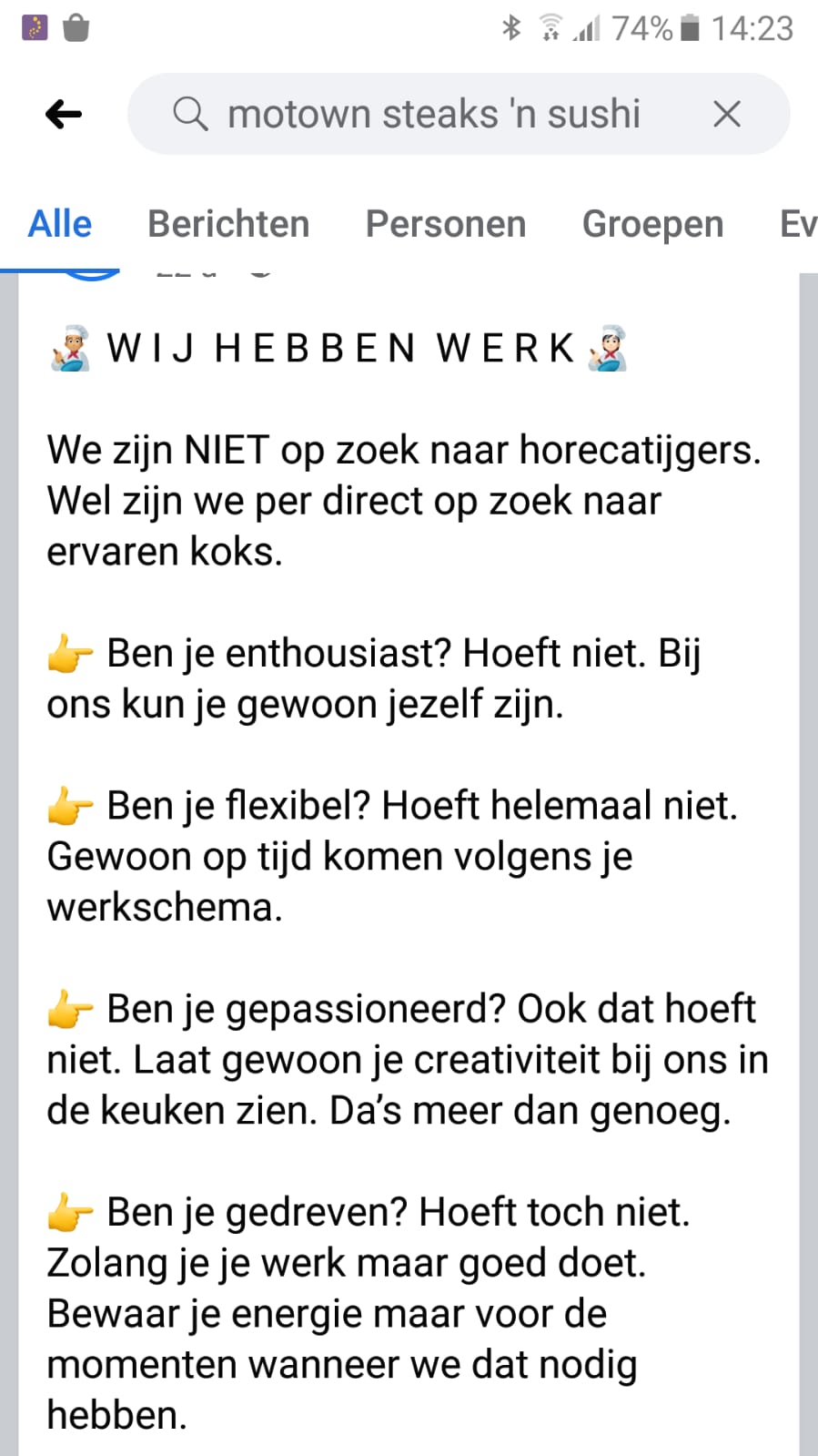 7. Hoe dan ook, zou het restaurant van de geniale vacature hier ook akkoord mee gaan?