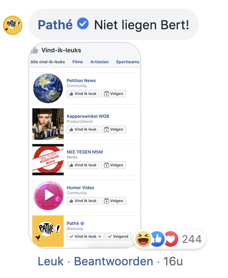 Pathé maakt een statement door gepast en gedurfd te reageren op haatreacties onder hun post. Ze laten daarmee zien dat ze de doelgroep begrijpen en een duidelijk standpunt innemen. We schreven er al eerder een blog over.