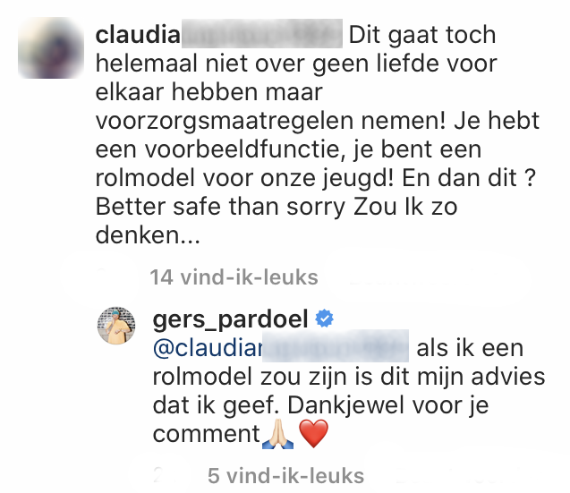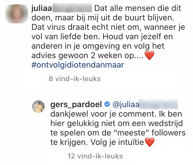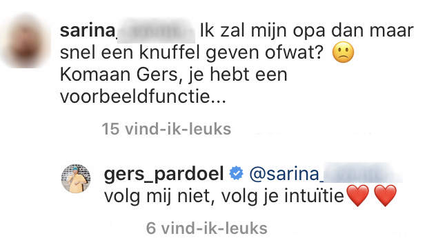 11. Gers heeft bijna 80k volgers op Twitter en 114k op Instagram. Zijn woorden kunnen serieus schade aanrichten als mensen het overnemen.