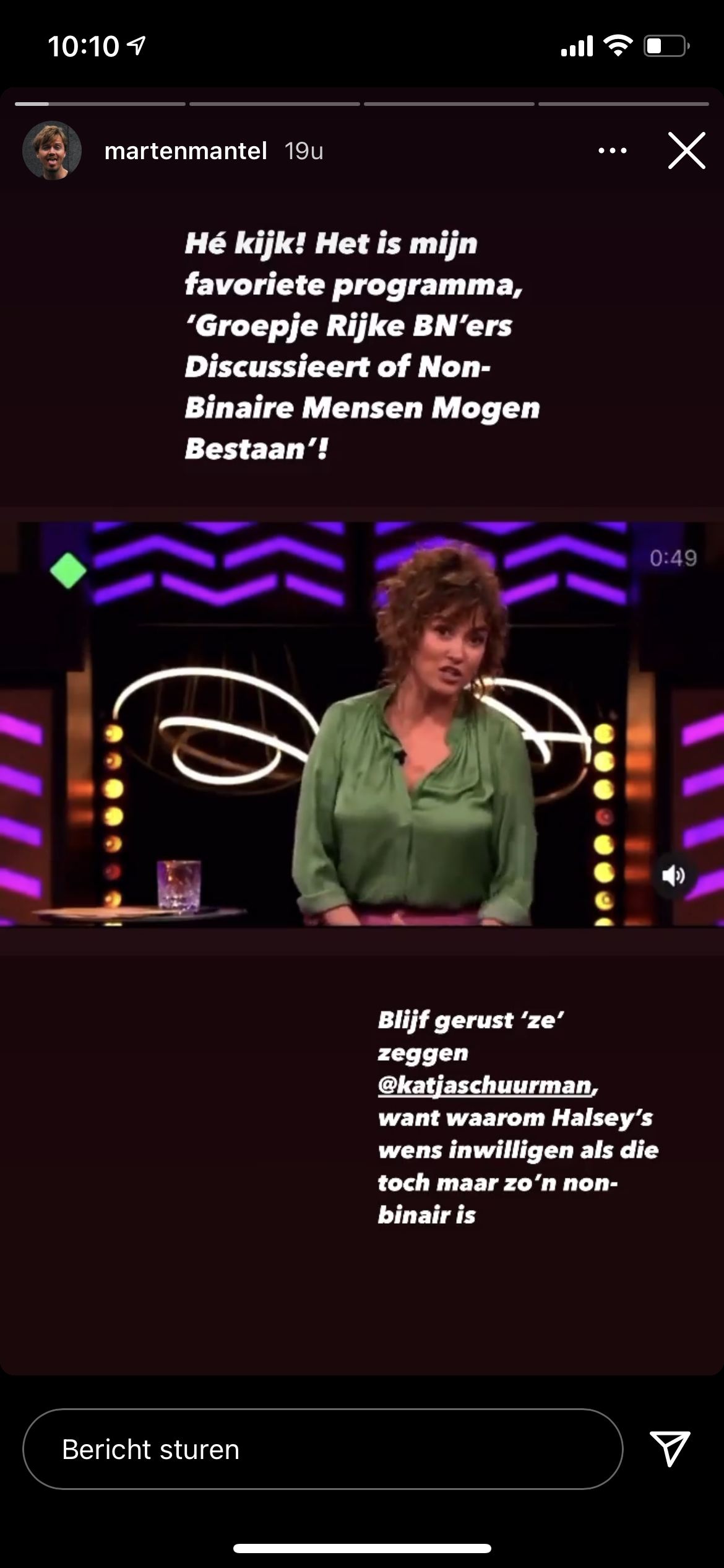 1. PowNed plaatste een stukje uit de aflevering op Instagram waarin dus te zien is dat er gesproken werd over genderneutrale voornaamwoorden.