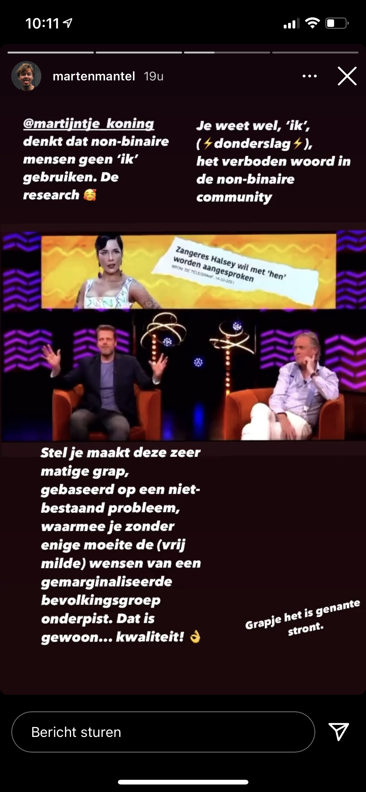 6. Ook Marten – onder andere bekend van z’n satirische posts – is het fragment niet ontgaan. Hij reageert in z’n story.