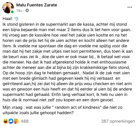 2. En zo vroeg Malu naar andere ‘random act of kindness’-momenten. Al snel blijkt dat ze niet de enige is die dit ooit is overkomen.