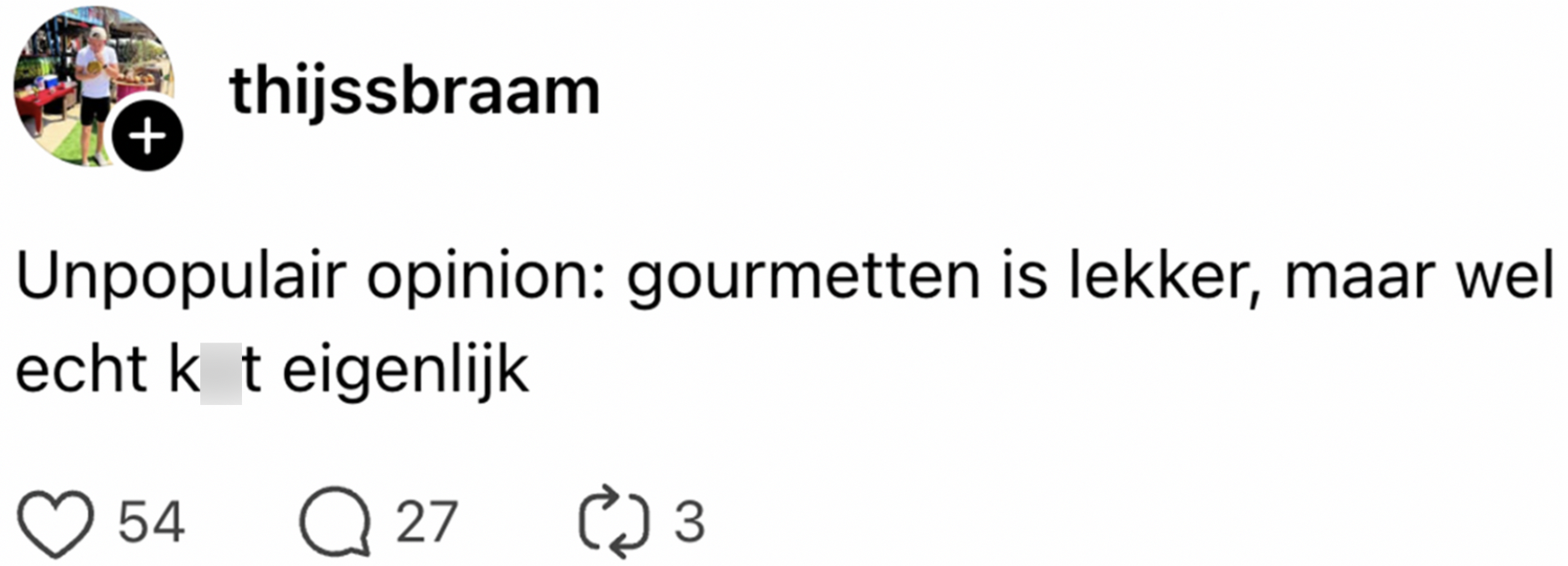 7. Deze threader deelt zijn haat-liefdeverhouding met gourmetten.