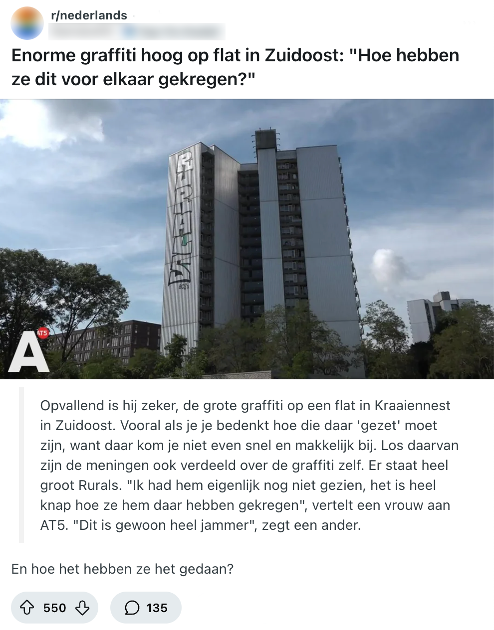 Nederlanders verward door graffiti op flat: ‘Hoe hebben ze dit voor elkaar gekregen?’