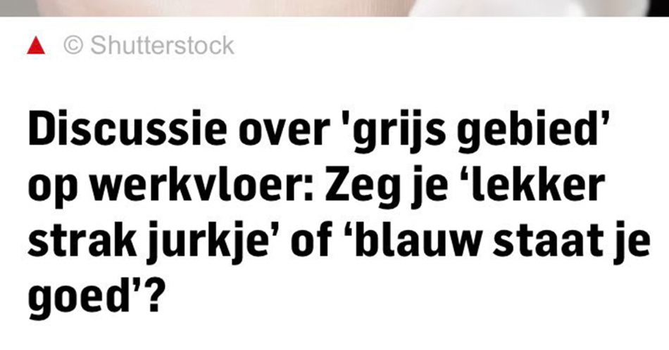 En ook ‘blauw staat je goed’ hoef ik niet te horen van een mannelijke collega. Ik weet zelf wel of iets me staat of niet. Kijk, bewonder, oordeel, maar alles in je hoofd. Wil je flirten (en is er geen machtsverhouding), leuk, maar doe dat iets subtieler. Blikken zeggen genoeg.