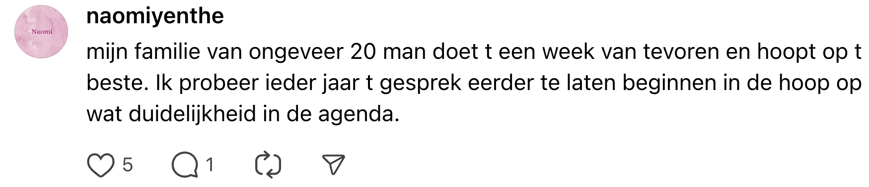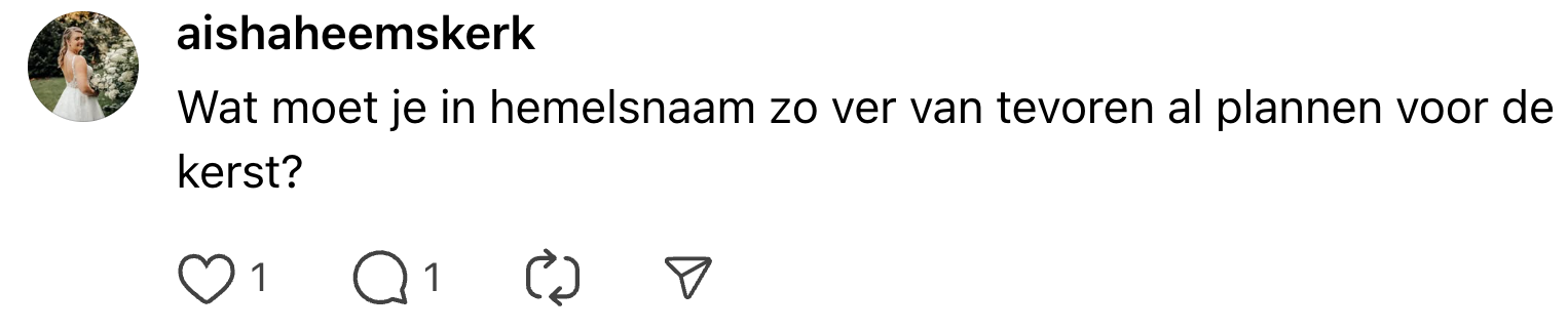 De pepernoten beginnen langzamerhand weer in de winkels te verschijnen, en voor je het weet kun je de kerstboom alweer in huis halen. Je zou denken dat je er niet vroeg genoeg bij kunt zijn, maar overdrijven is ook een vak. Zo wordt Linda door haar familie alvast toegevoegd aan een WhatsApp-groep voor een feestdag die nog wel érg ver in de toekomst ligt…