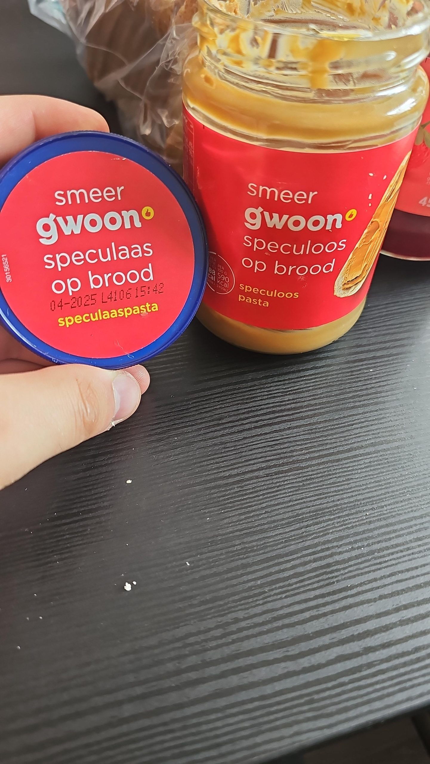 Hoewel ze het misschien niet graag toegeven, kunnen veel Nederlanders niet zonder hun gesmeerde bammetjes tijdens de lunch. Wat er op dat bammetje zit, verschilt per dag. Brood-eters hebben dan ook potten en verpakkingen vol met beleg in de voorraadkast staan. Want ja, je weet maar nooit wanneer je ineens ontiegelijk veel zin hebt in vruchtenhagel of perzikenjam. Deze Nederlander pakt een pot speculoospasta van g’woon uit de kast om een boterham mee te beleggen. Of is het speculaaspasta? G’woon lijkt het niet zeker te weten…