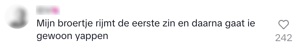 6. Van het broertje is rijmen niet de sterkste kant.