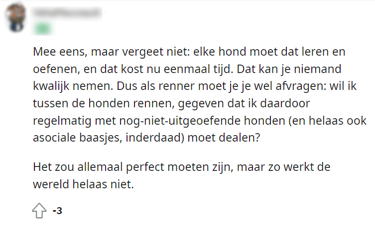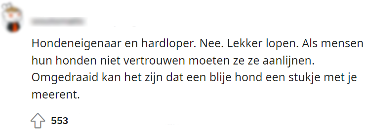10. Kortom: de hardloper staat in zijn recht en het is aan de baasjes om hun honden in bedwang te houden.