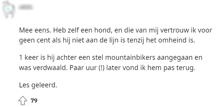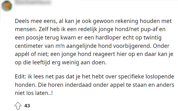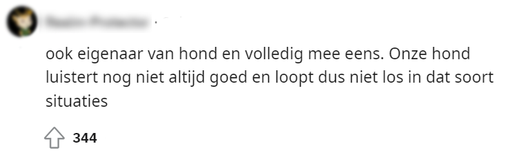 5. Anderen benadrukken wel dat er rekening met elkaar moet worden gehouden, maar dit geldt alleen als de honden zijn aangelijnd.