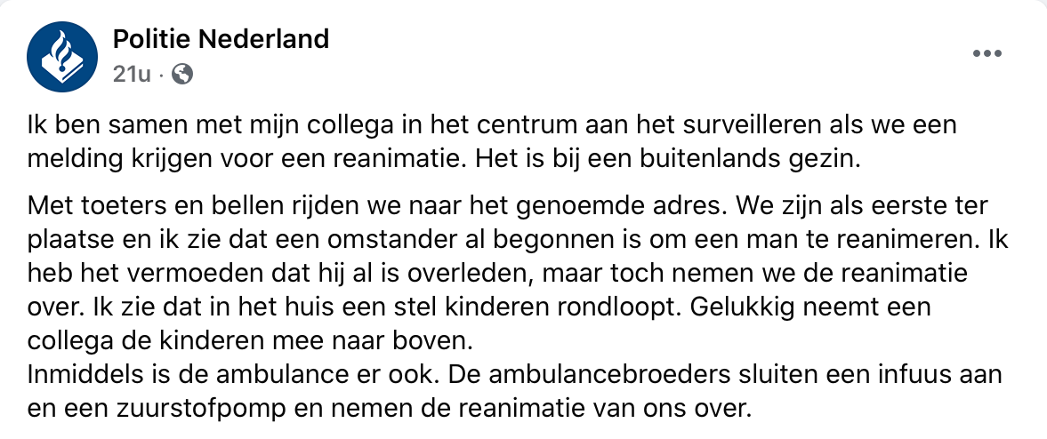 Het leven als politieagent is lang niet altijd even makkelijk. Op Facebook deelde hoofdagent Lisalinde een aangrijpend blog over een van de vele zware kanten van het vak.