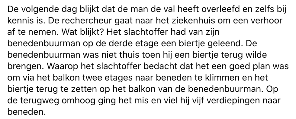 3. Ongelofelijk maar waar: de volgende dag is de man bij kennis en kan hij precies navertellen wat er gebeurd is. En dat had waarschijnlijk niemand zich kunnen bedenken.