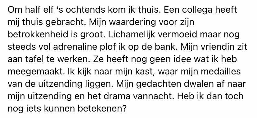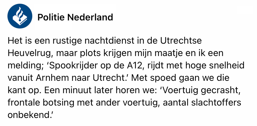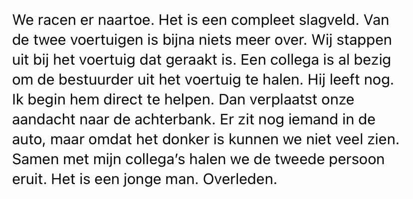 Iedereen verwerkt heftige gebeurtenissen op zijn eigen manier, zo ook politieagenten, die regelmatig zware gebeurtenissen meemaken. Brigadier Leo verwerkt het door erover te schrijven. Politie Nederland publiceerde zijn blog op hun Facebook pagina.
