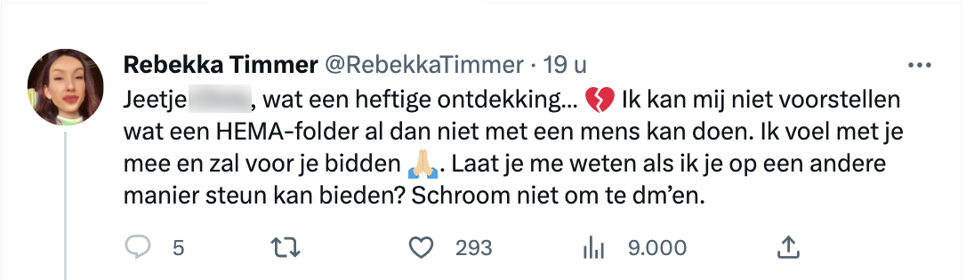 7. Demy is het model uit de folder van HEMA en laat weten blij te zijn met alle support.