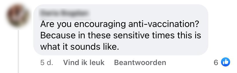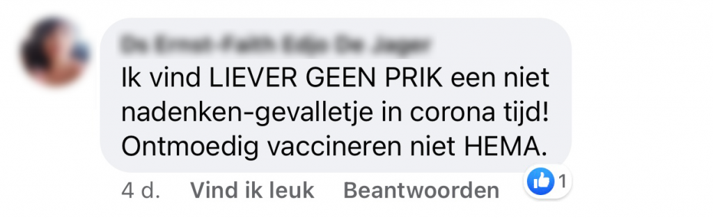 5. En waar Marc nog dacht aan een sneertje richting anti-vaxxers, denken anderen dat HEMA met deze post het vaccineren probeert te ontmoedigen.