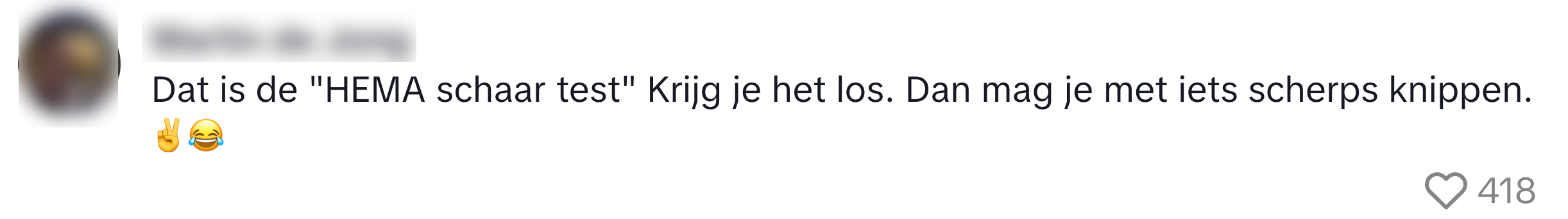 Als je iets wilt doorknippen, is een schaar vaak de beste optie. Met je handen blijven zagen schiet vaak niet zo op, en een kettingzaag is wel heel extreem. Larissa besluit daarom bij de HEMA een exemplaar te halen, maar loopt eenmaal thuis tegen een probleempje aan. Ze deelt dit online en mensen scharen zich massaal achter haar.
