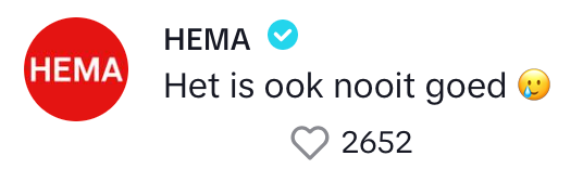 Krijg jij nou geen genoeg van HEMA? Nou, dan hebben we goed nieuws. We schreven namelijk veel meer artikelen over deze winkel. Lees bijvoorbeeld dit artikel, over HEMA die de draak steekt met de crompouce-trend waardoor volgers krom liggen van het lachen. Of wat dacht je van dit artikel, waarin HEMA zorgt voor een nieuw hoogtepunt met een spannend product.