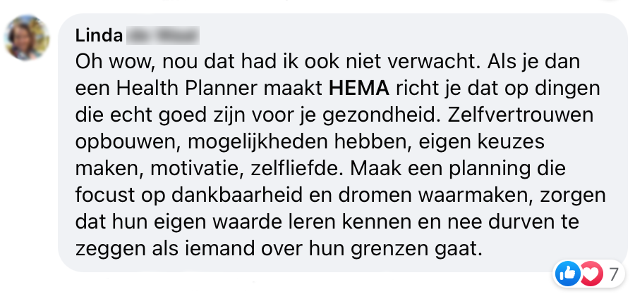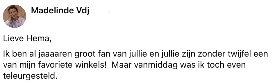 6. Madelinde spreekt uit eigen ervaring en vraagt daarom aan HEMA om nog eens over dit product na te denken.