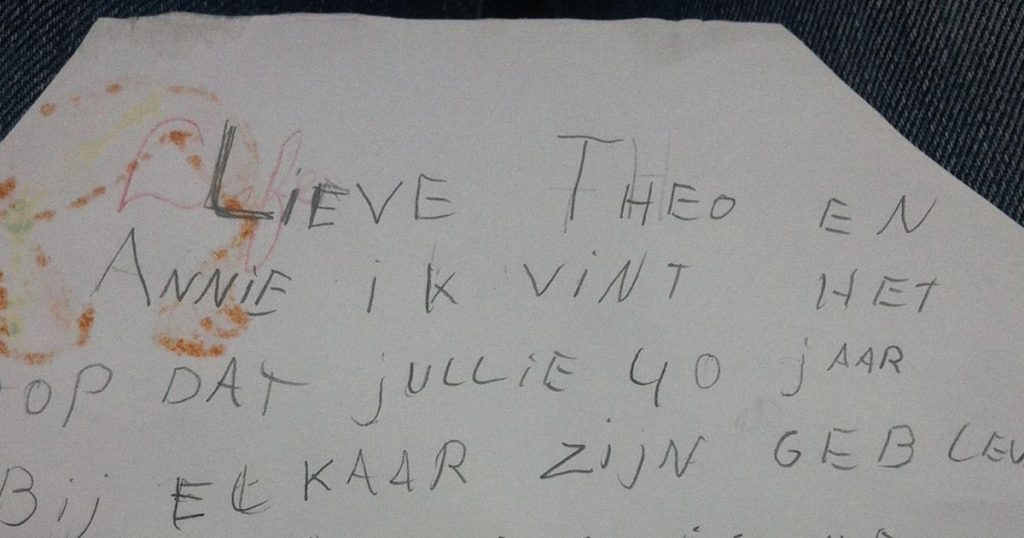 1. Als je deze woorden leest denk je: lief en schattig. Een achtjarig meisje die een brief schrijft voor het 40-jarig huwelijk van haar opa en oma. Zoetsappigheid gegarandeerd.