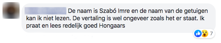 6. Er zijn ook genoeg mensen te vinden die wel hulp kunnen bieden, zo weten we dankzij deze persoon dat degene die dit briefje schreef Szabó Imre heet.