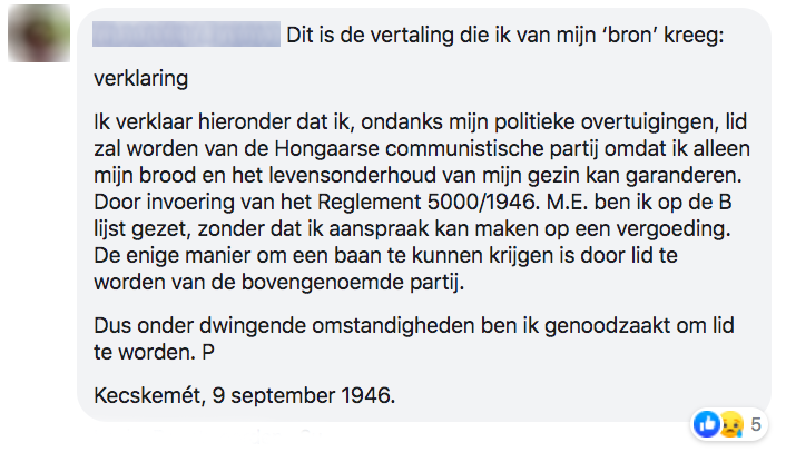 2. En dit is de tekst op het briefje in het Hongaars en met de Google Translate vertaling erbij.