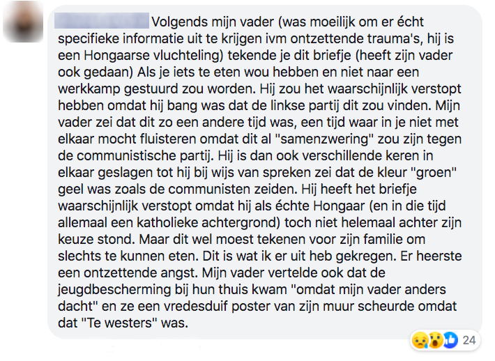 8. En deze persoon deelt iets meer context bij het verhaal. In het kort: je tekende dit omdat je op die manier aan eten kon komen. Deze persoon was het er dus eigenlijk niet mee eens, maar moest wel om eten te krijgen voor z’n familie.
