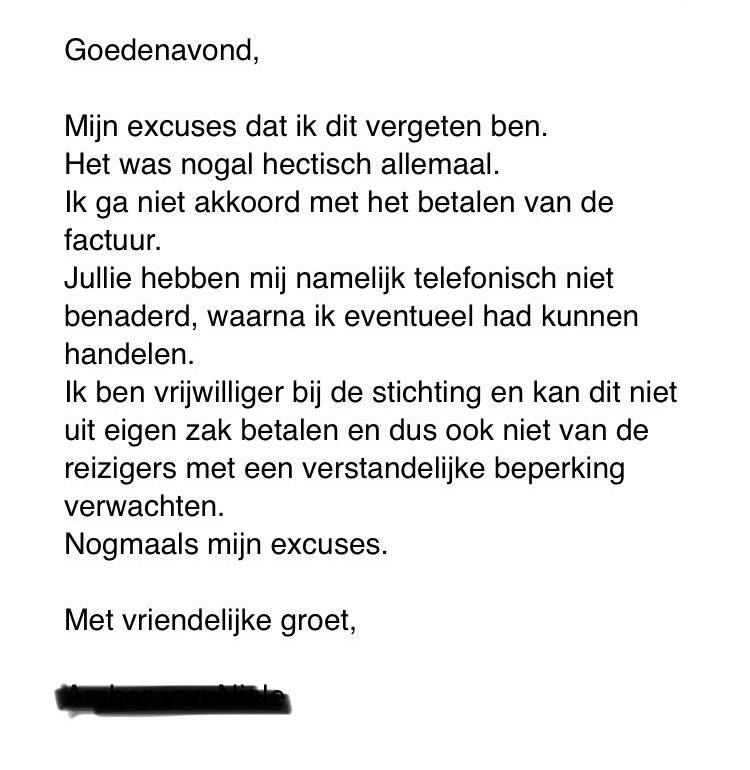 5. Uit de reactie van de stichting die zou komen lunchen blijkt dat zij niet bereid zijn het bedrag te betalen.