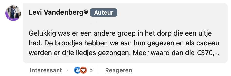 3. Tot zijn grote verbazing hoort Levi niks van de groep en zit hij met de gebakken peren. Daarom vraagt hij mensen op LinkedIn om advies.