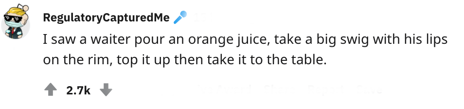 Kan je het je nog vaag herinneren? Hoe het voelt om uiteten te gaan in een restaurant? Het is inmiddels een tijdje geleden dat het kon, maar hopelijk komt daar heel snel verandering in. Althans, als het om lekker eten gaat. Op Reddit delen horecamedewerkers verhalen over wat zij, of hun collega’s, wel eens voor vies gedaan hebben met de maaltijd van de klant. En veel van deze verhalen kan je maar niet tijdens het eten lezen.