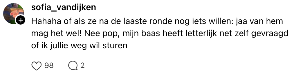 1. Sophie deelt haar ergernis aan ‘name droppers’ in de horeca.