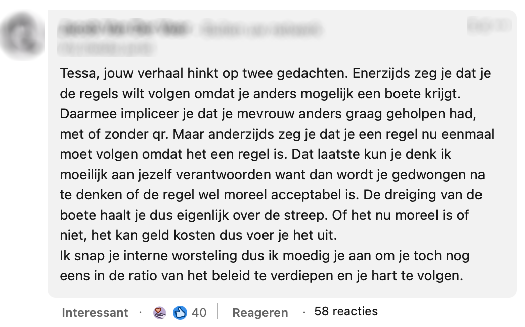 Eén van de coronamaatregelen is dat horecazaken bij binnenkomst de QR-code moeten scannen van hun klanten. Je klanten wegsturen vanwege een ontbrekende QR-code, omdat je anders een flinke boete krijgt, is voor niemand leuk. Het blijft een een lastig verhaal. Ook Tessa worstelt met deze regeling en deelt haar verhaal op LinkedIn.