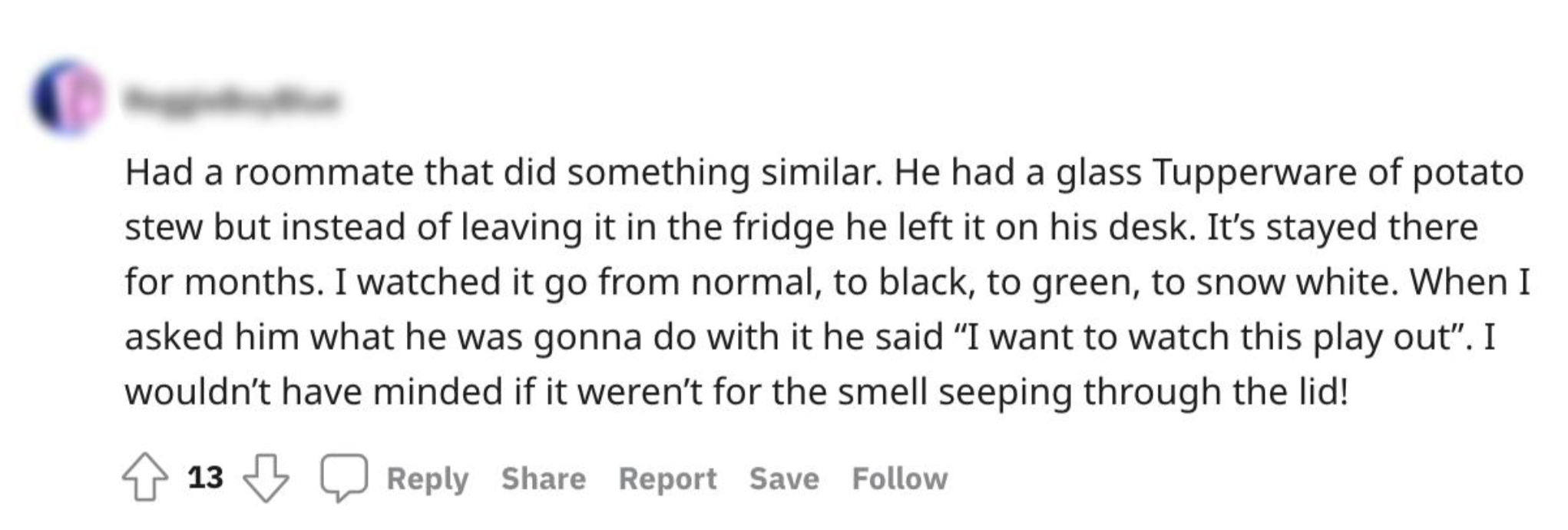 7. Wat deze huisgenoot precies van plan was met schimmelende bonen blijft een raadsel.