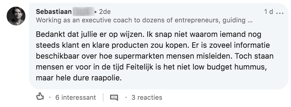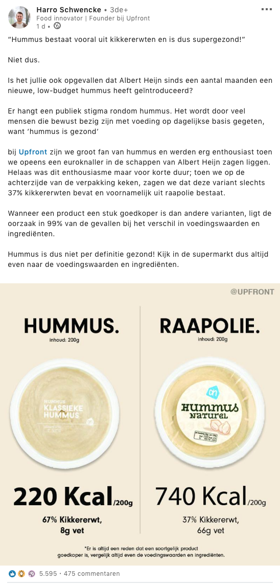 Viral: LinkedIn-post toont verhelderende waarheid over “gezonde” hummus