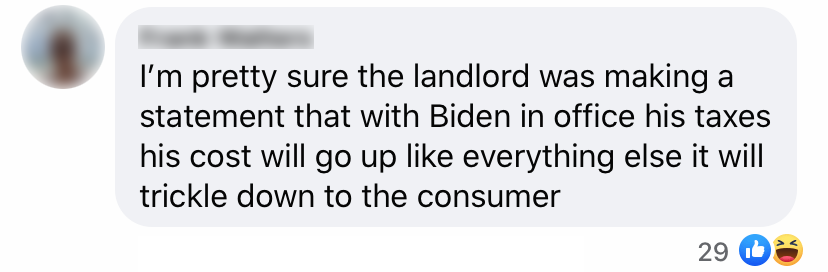 4. Maar sommigen zien alleen een waarschuwing. Zij denken dat de huurbaas hiermee zegt dat alle kosten, waaronder dus ook de huur, omhoog gaan, zodra Biden aan de macht komt.