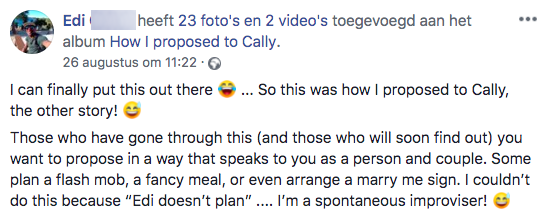 2. Z’n vriendin houdt hem scherp in de gaten en zou een ‘normaal’ aanzoek zeker door hebben.