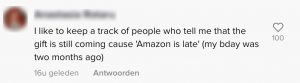 7. Anderen realiseren zich dat zo’n Excel-sheet ook handig is om de ’te late’ cadeautjes in bij te houden. Of zijn die cadeautjes op mysterieuze wijze ‘verdwenen’?