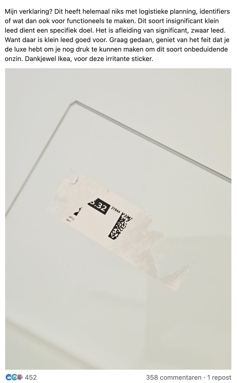 Een bezoekje aan IKEA heeft zo z’n voor- en nadelen. Pluspunten: je kunt voor een prikkie je complete inboedel bij elkaar sprokkelen, én eindelijk weer een lading Zweedse balletjes in je huig jassen. De minpunten: het slakkentempo van andere bezoekers, en die handleiding waar geen &%($#@ aan vast te knopen is. Volgens Dion is er echter nóg iets waarvoor IKEA absoluut geen sticker voor verdient, en dat legt-ie haarfijn uit op LinkedIn.