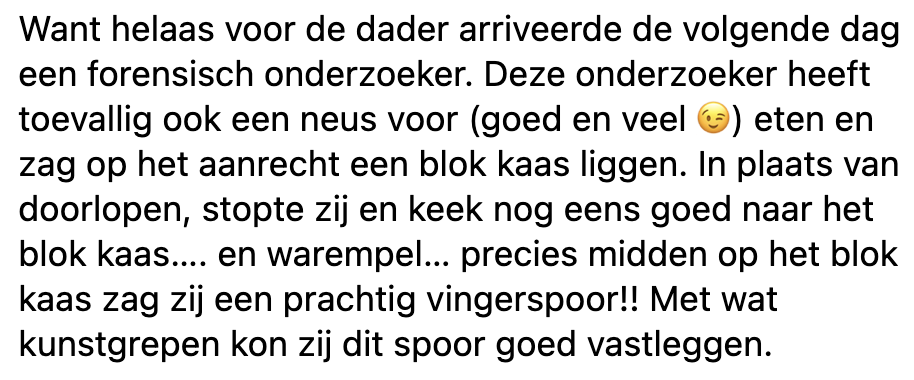 11. Maar goed dat de inbreker de stinkkaas heeft kunnen weerstaan.