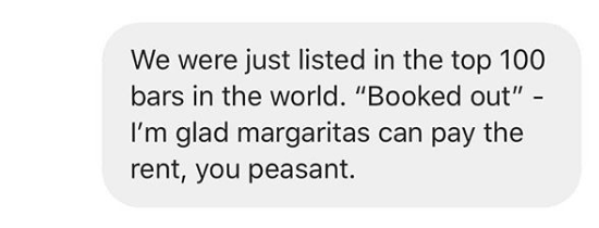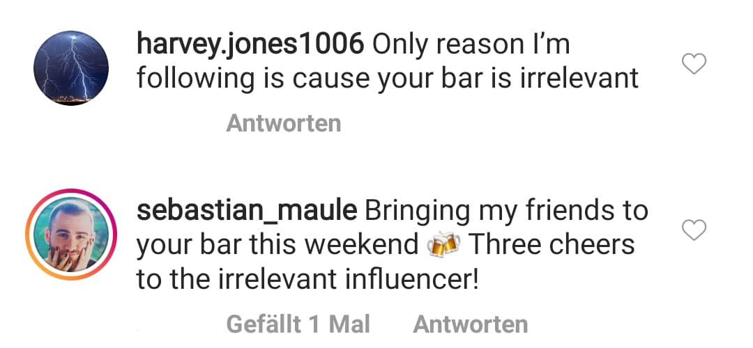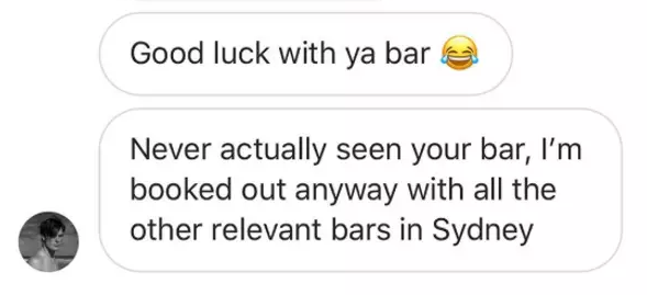 7. De Australische bar vindt het allemaal reuze grappig en heeft een zin uit het gesprek zelfs in de bio gezet.