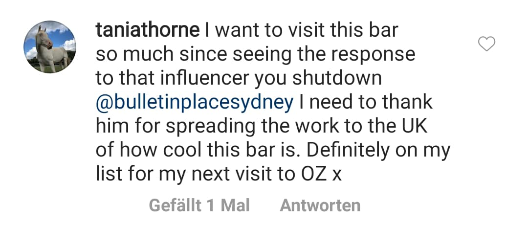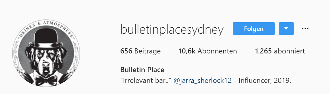 1. Het gaat om de bar ‘Bulletin Places Sidney’, die natuurlijk zelf ook actief zijn op Instagram.