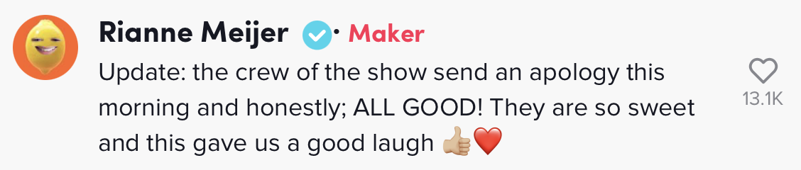8. Tot slot heeft de crew van de show inmiddels van zich laten horen.